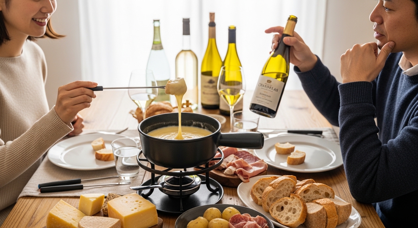 - チーズフォンデュのワインは「辛口・酸しっかり・香り爽やか」がキーワードで、甘口すぎる白は避けた方が無難です。