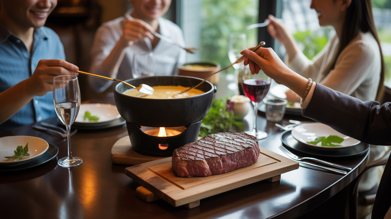 家庭でも飲食店でも、赤身寄りの熟成肉×複数チーズのブレンド×白ワイン入りのフォンデュという3要素を押さえることで、香りが重なり合うステーキ×チーズフォンデュ体験を再現できます。