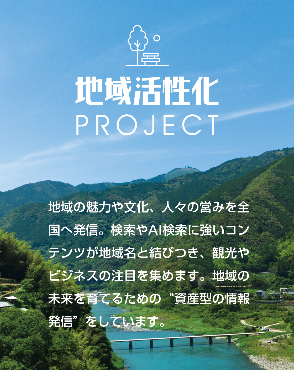 地域に眠る魅力や人の想いを365日発信し続けることで、まち全体を元気にする地域活性化プラットフォームです。地元の商店・職人・文化・観光資源・地域の情報などを、日々の情報発信を通して全国へ届け、地域の“今”を未来へつなげます。私たちは、情報発信を「地域を応援する力」と信じ、地域の魅力をともに育て、広げていきます。